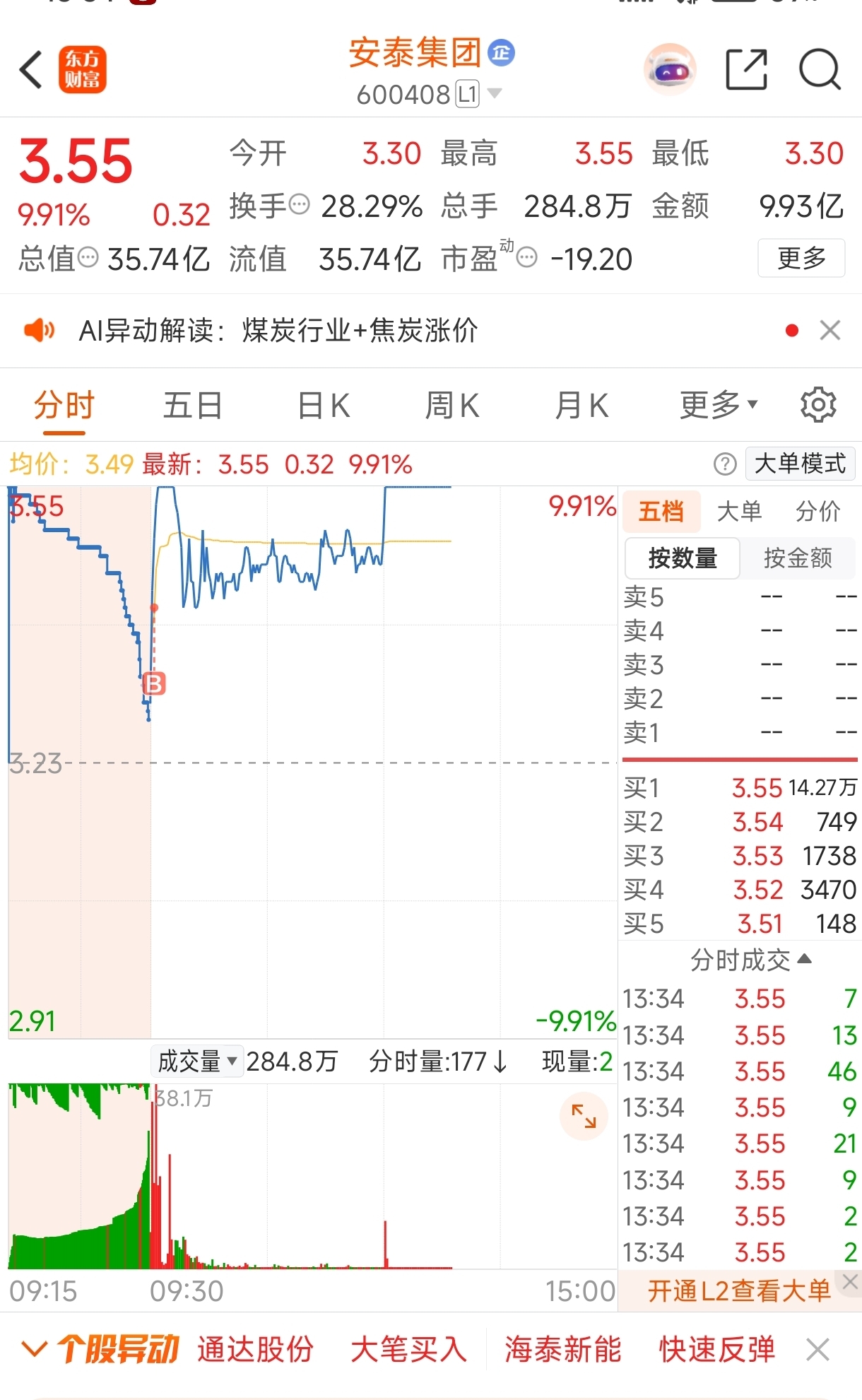 $安泰集团(SH600408)$ 他奶奶的打了两次板都亏本,这个主力太坏了