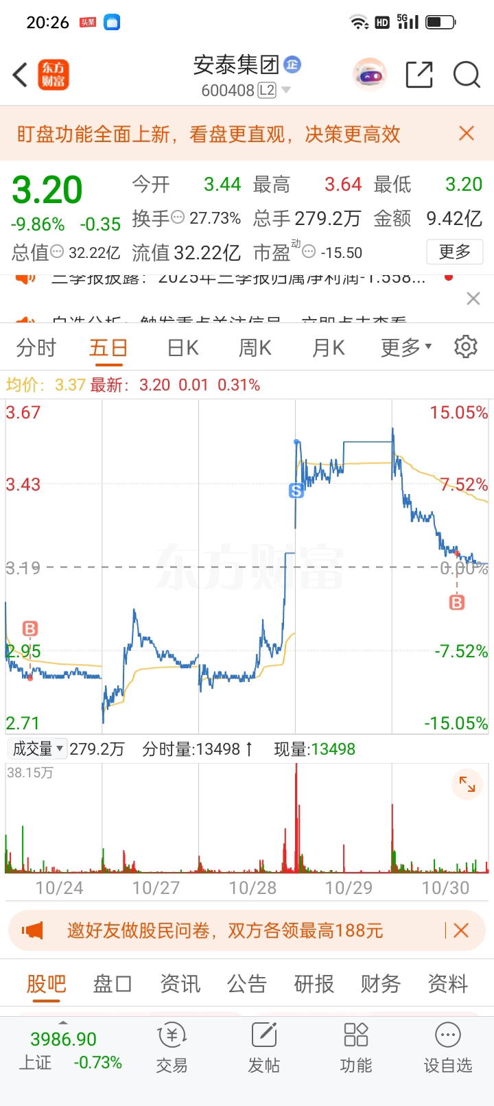 $安泰集团(SH600408)$ 绿买红卖就能拿捏主力