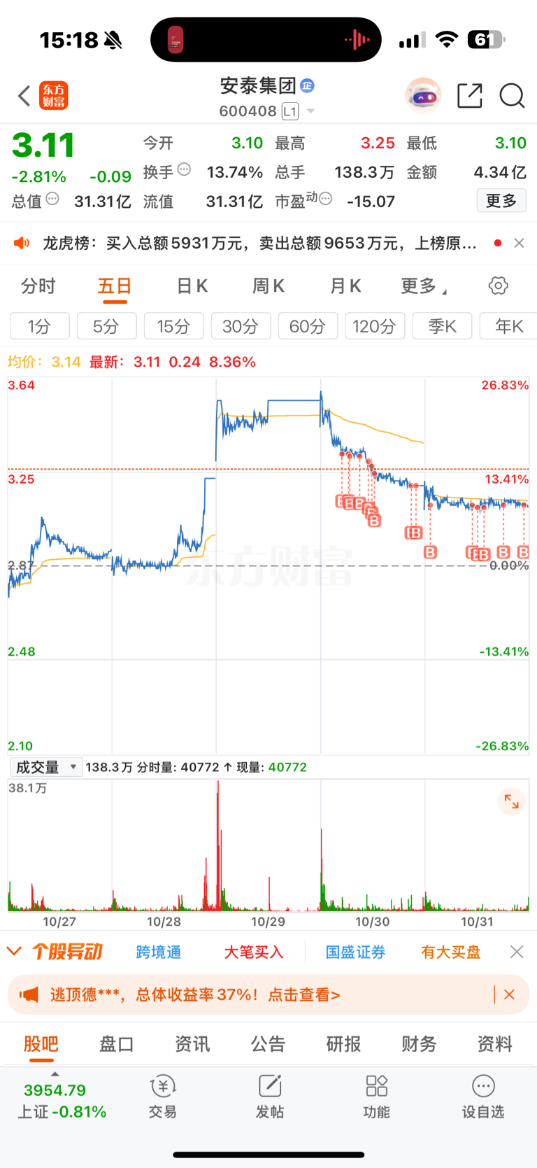 $安泰集团(SH600408)$  我真的很想撞墙,昨天大众跟亚辰填完坑割肉买了安泰。结果他们今天都涨停,又来安泰填坑了