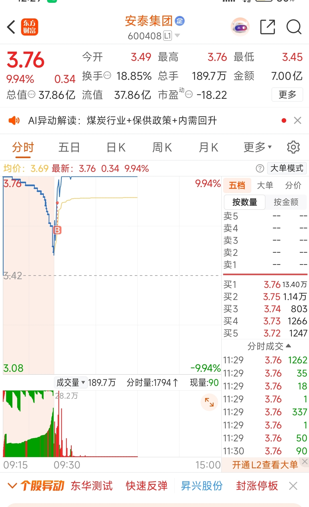 $安泰集团(SH600408)$ 进二退二再进二,干就完事了