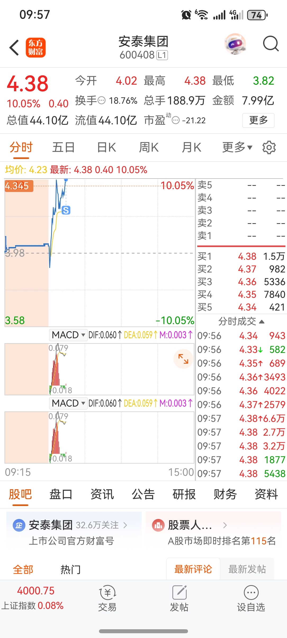 $安泰集团(SH600408)$ 手续费没亏,赚一块钱跑了