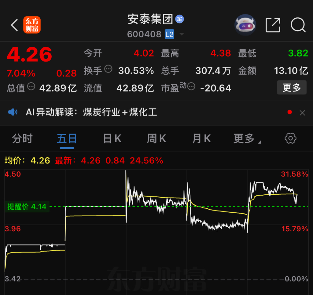 $安泰集团(SH600408)$ 最近都是这样,快习惯了