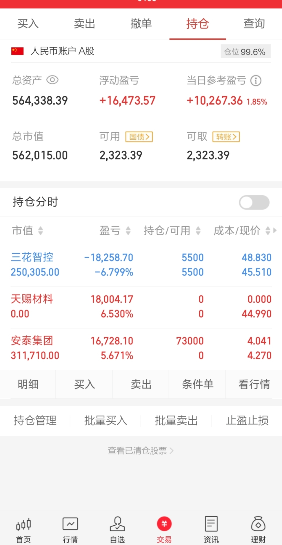 三花不动再观察一天,天赐材料早盘止盈切换到安泰集团。