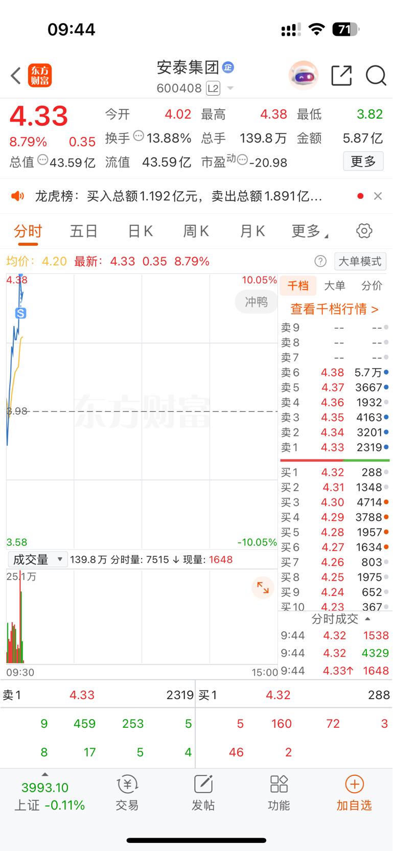 $安泰集团(SH600408)$ 昨天一个个都在幻想妖王诞生,现在韭菜们离回本又差很远咯