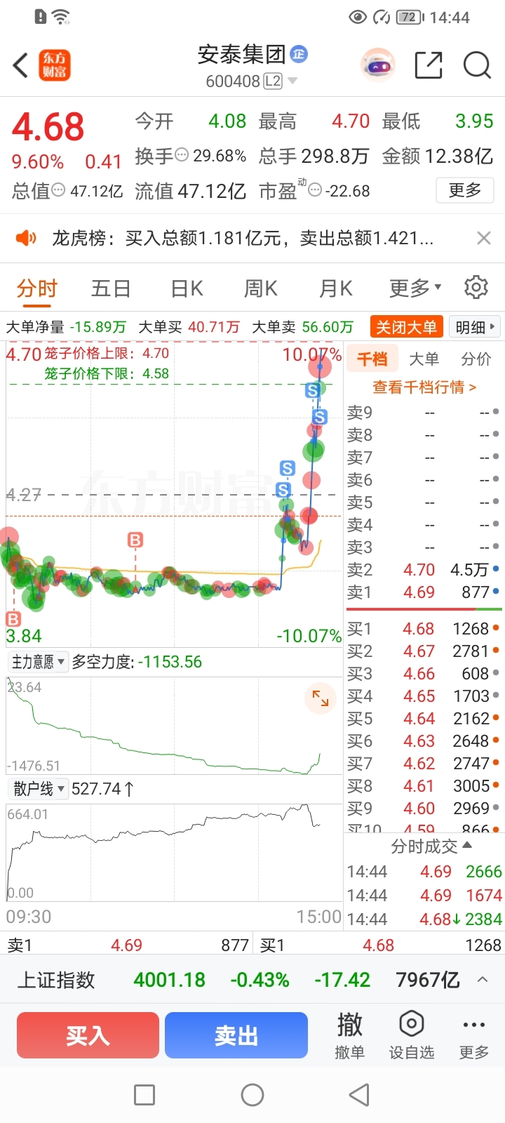 $安泰集团(SH600408)$ 今天把底仓全出来