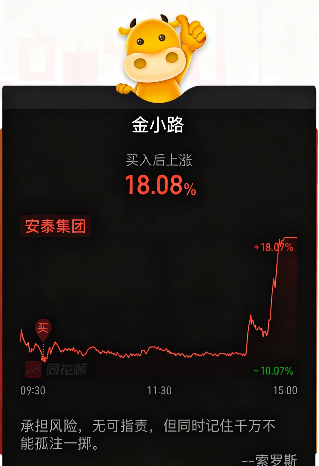 郑重声明:用户在财富号/股吧/博客等社区发表的所有信息(包括但不限于文字、视频、音频、数据及图表)仅代表个人观点,与本网站立场无关,不对您构成任何投资建议,据此操作风险自担。请勿相信代客理财、免费荐股和炒股培训等宣传内容,远离非法证券活动。请勿添加发言用户的手机号码、公众号、微博、微信及QQ等信息,谨防上当受骗!
