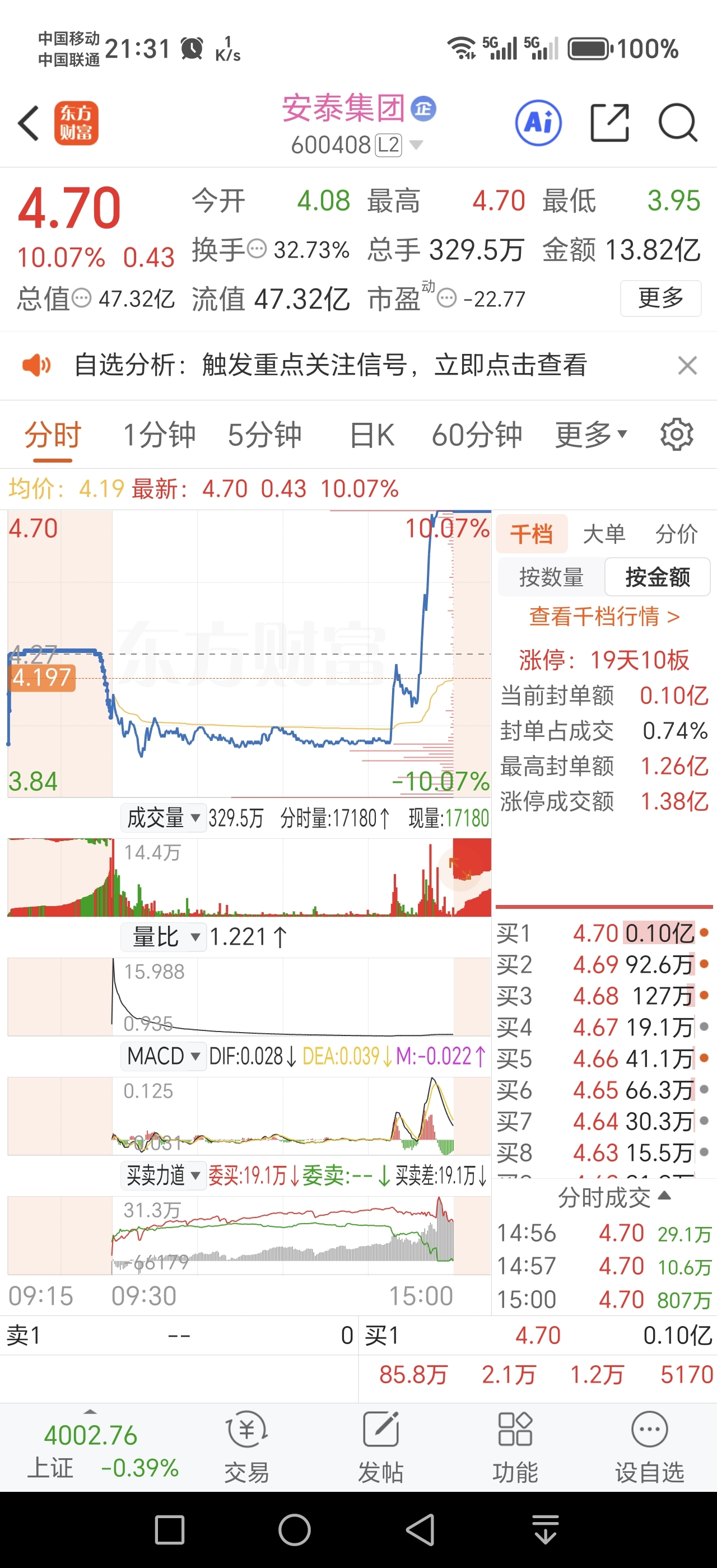 $安泰集团(SH600408)$ #收盘点评# #复盘记录# #股市怎么看# #实盘记录# #周末杂谈# 我今天做着静静看你拉板,在下来,这一次居然没炸板,有意思