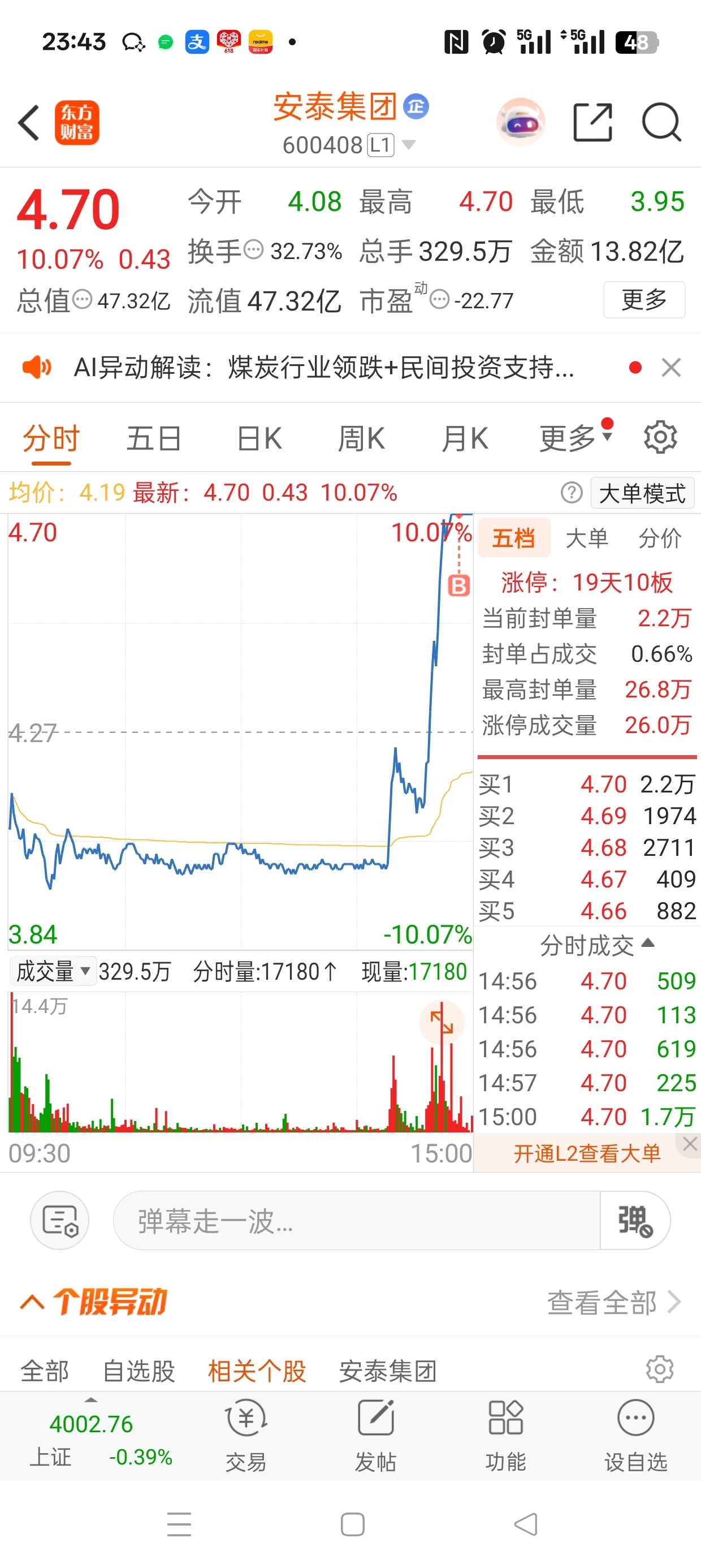 $安泰集团(SH600408)$ 板上承接还可以,前高也突破了,明天能不能吃肉呢?