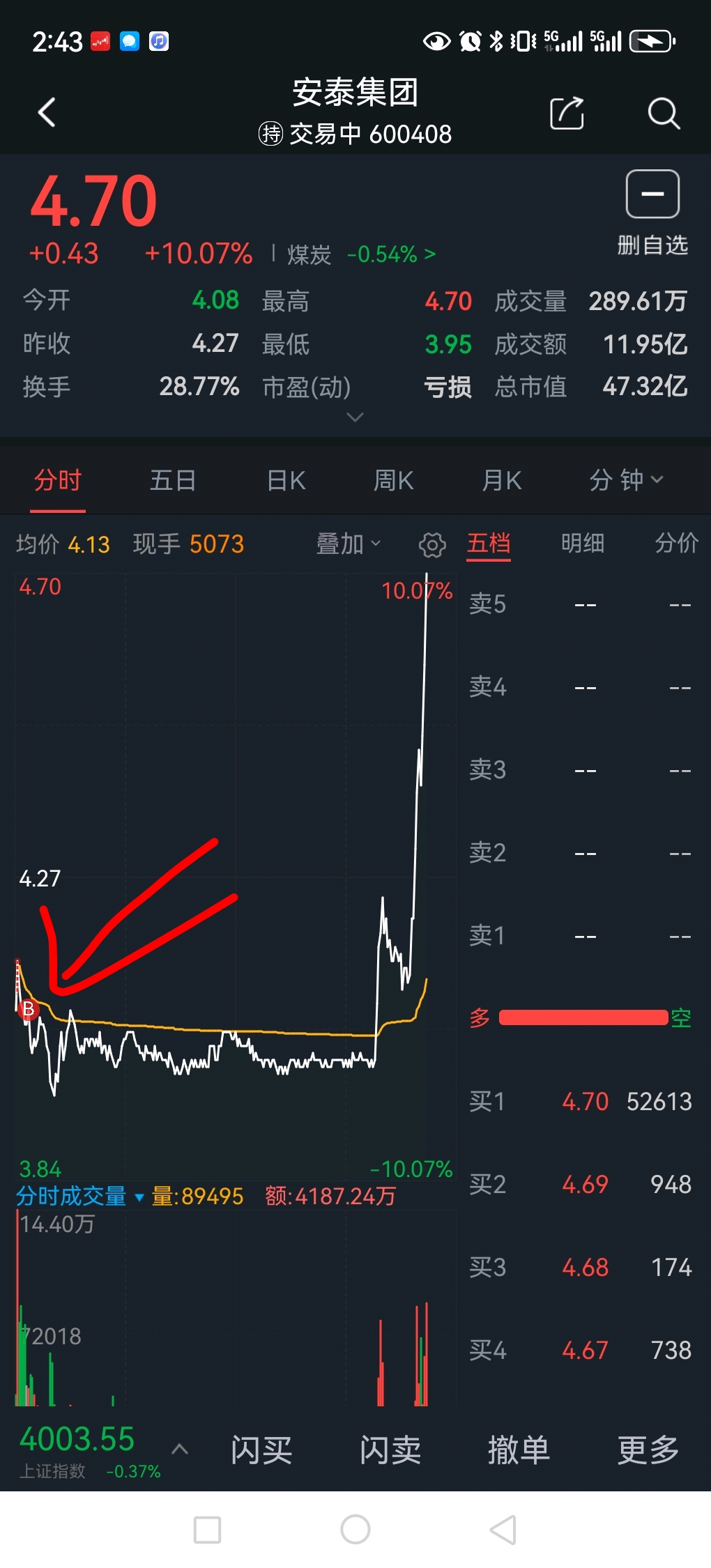 $安泰集团(SH600408)$ 当时开盘就买了,贪大过恐惧!!!赌了。
