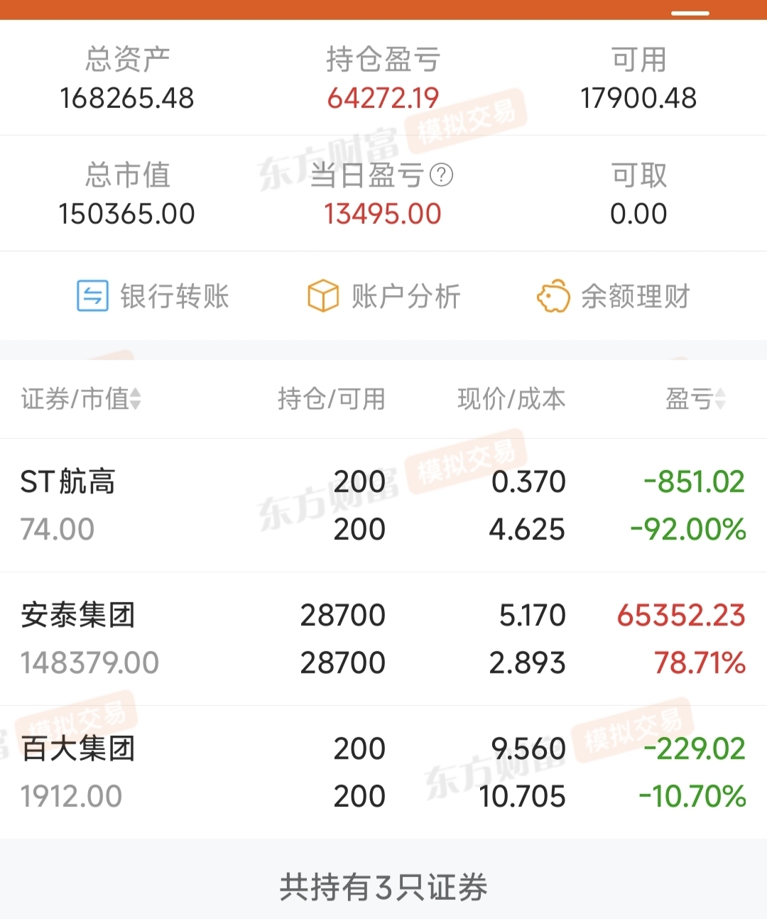 $安泰集团(SH600408)$ 买对了,可惜是模拟盘