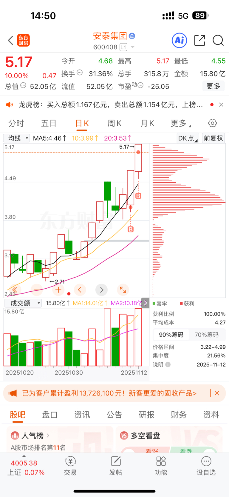 $安泰集团(SH600408)$ 这能几个板