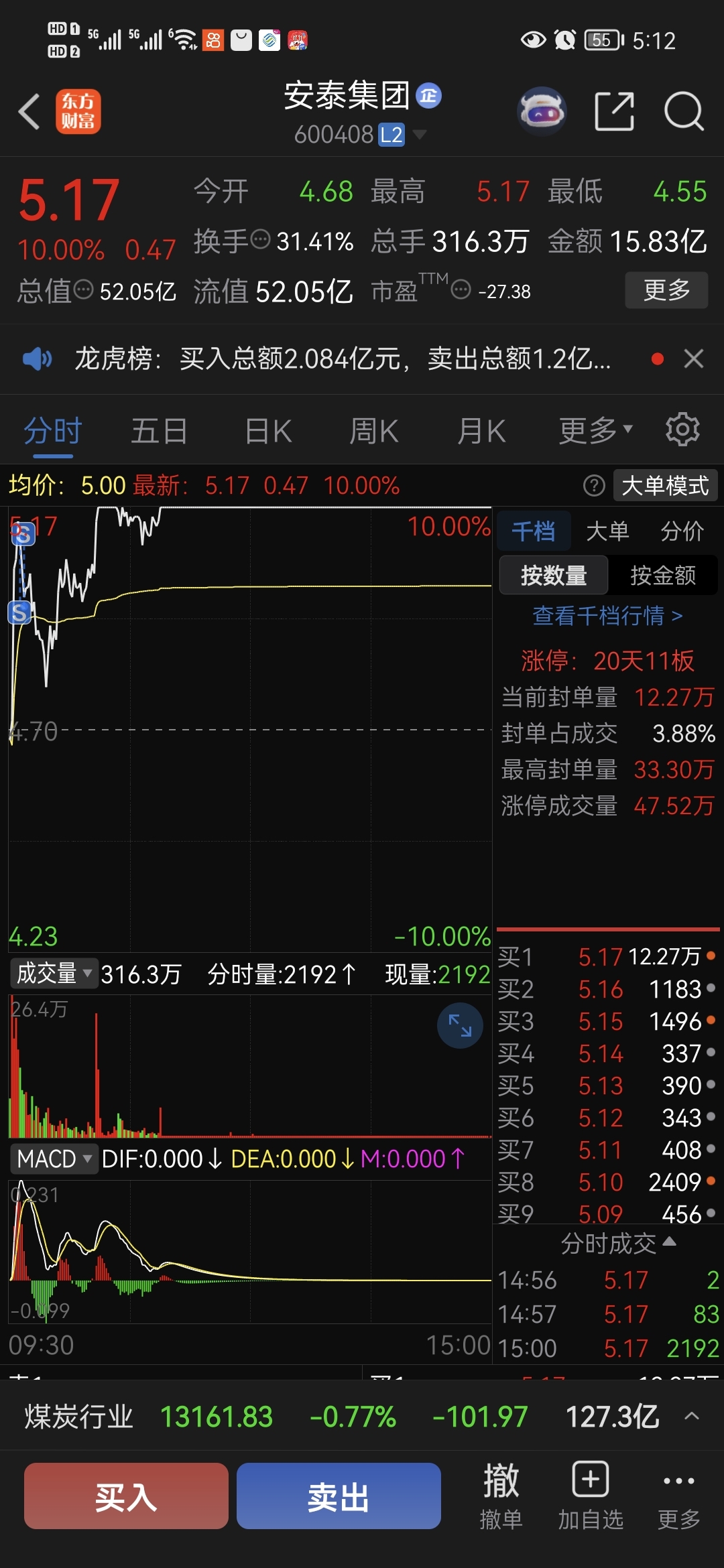 $安泰集团(SH600408)$ 陈见顶来了,我先走了