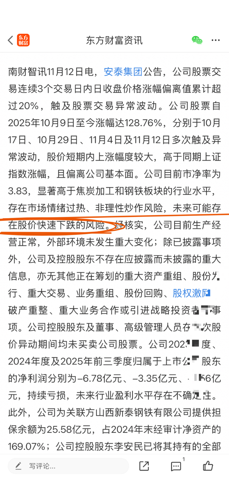 $安泰集团(SH600408)$ 发公告了