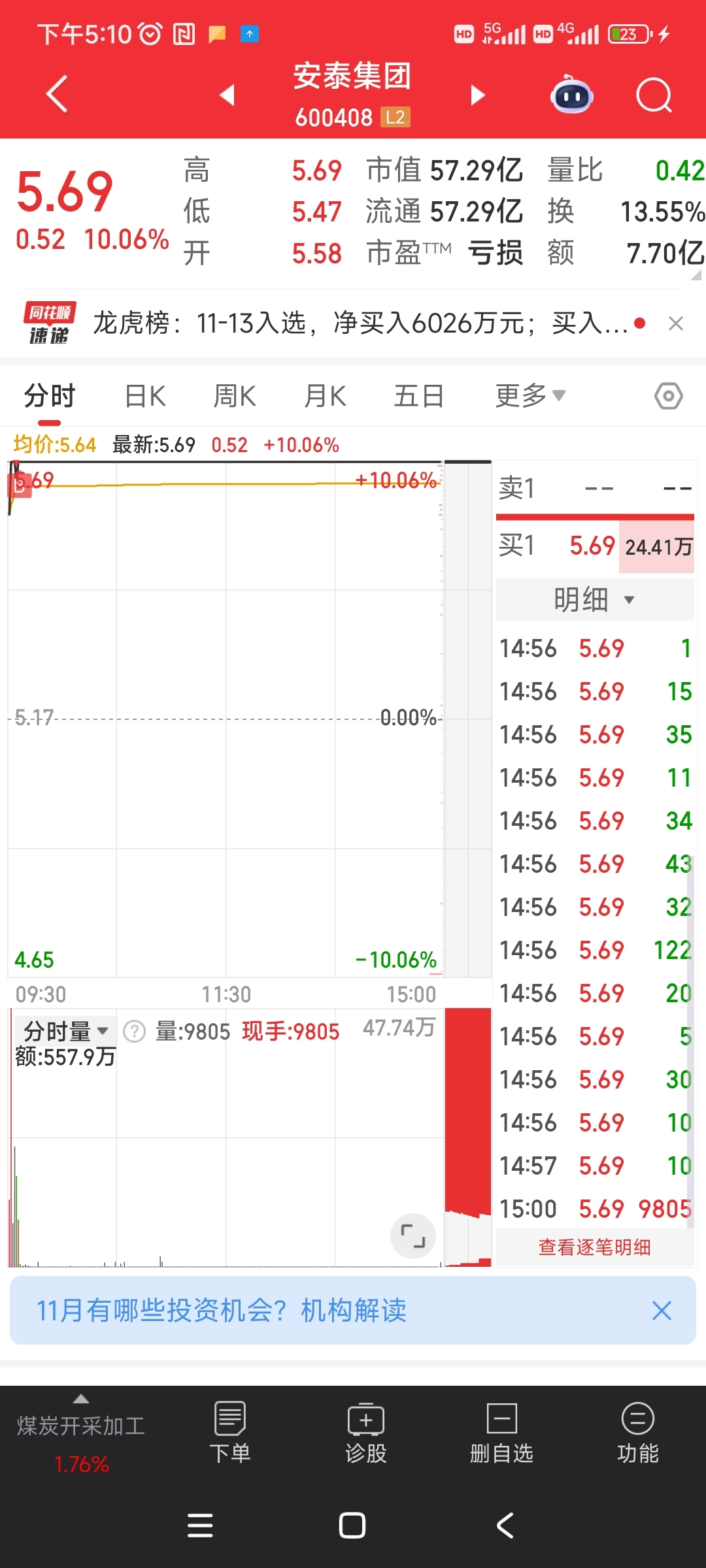 $安泰集团(SH600408)$ 高位持股待涨,最后一次买了,剩下就持有,等爆头