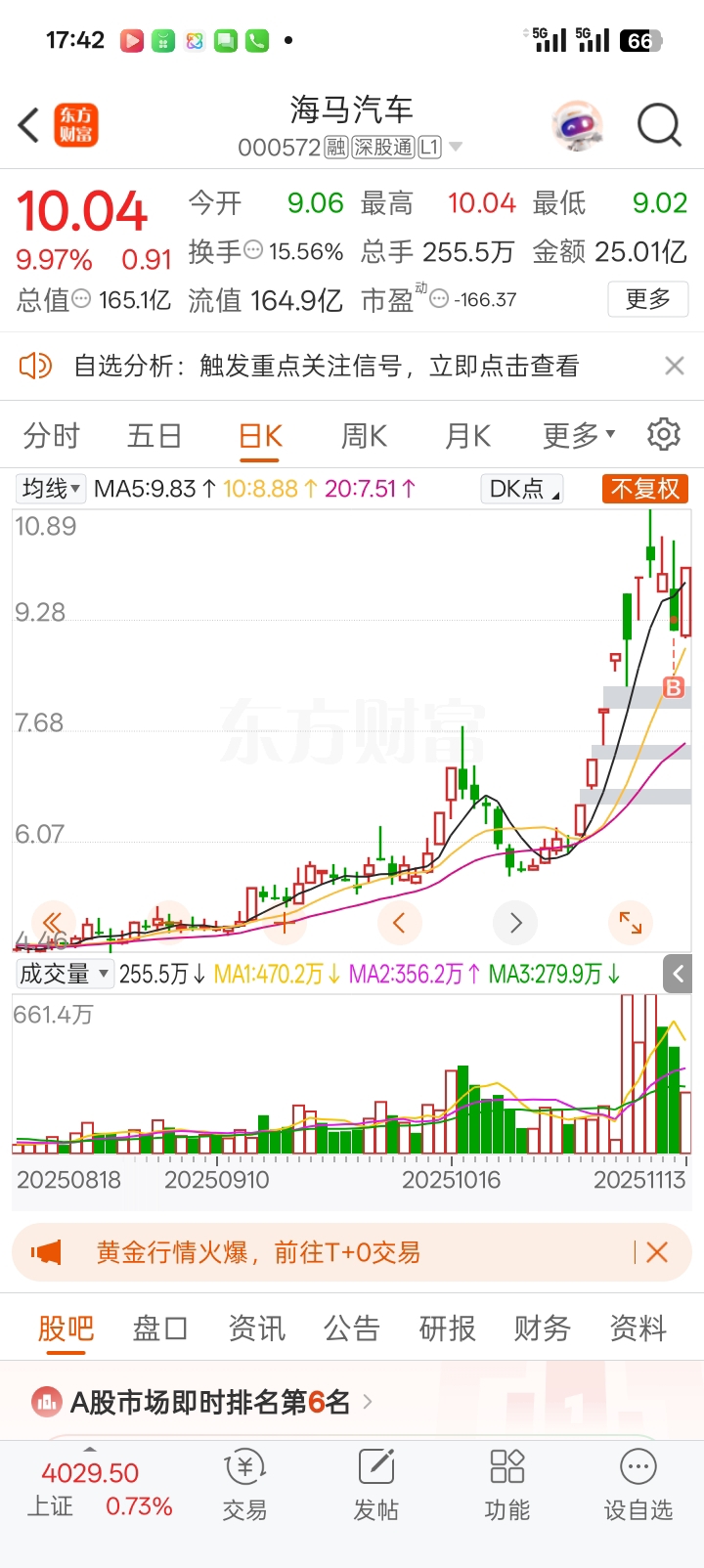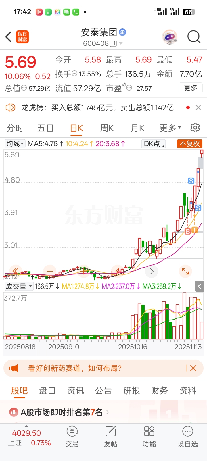昨天出了安泰,进了海马,明天安泰大概率上板。