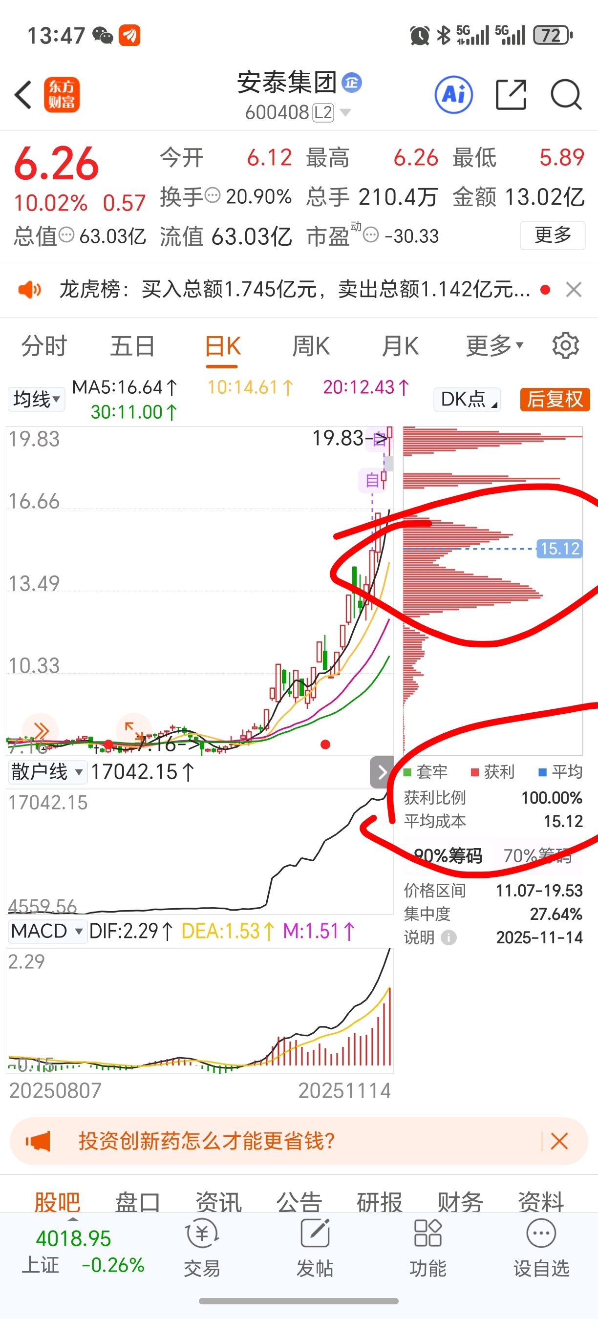 $安泰集团(SH600408)$ 怎么筹码平均成本显示15.12。怎么回事。大神们指点下咋