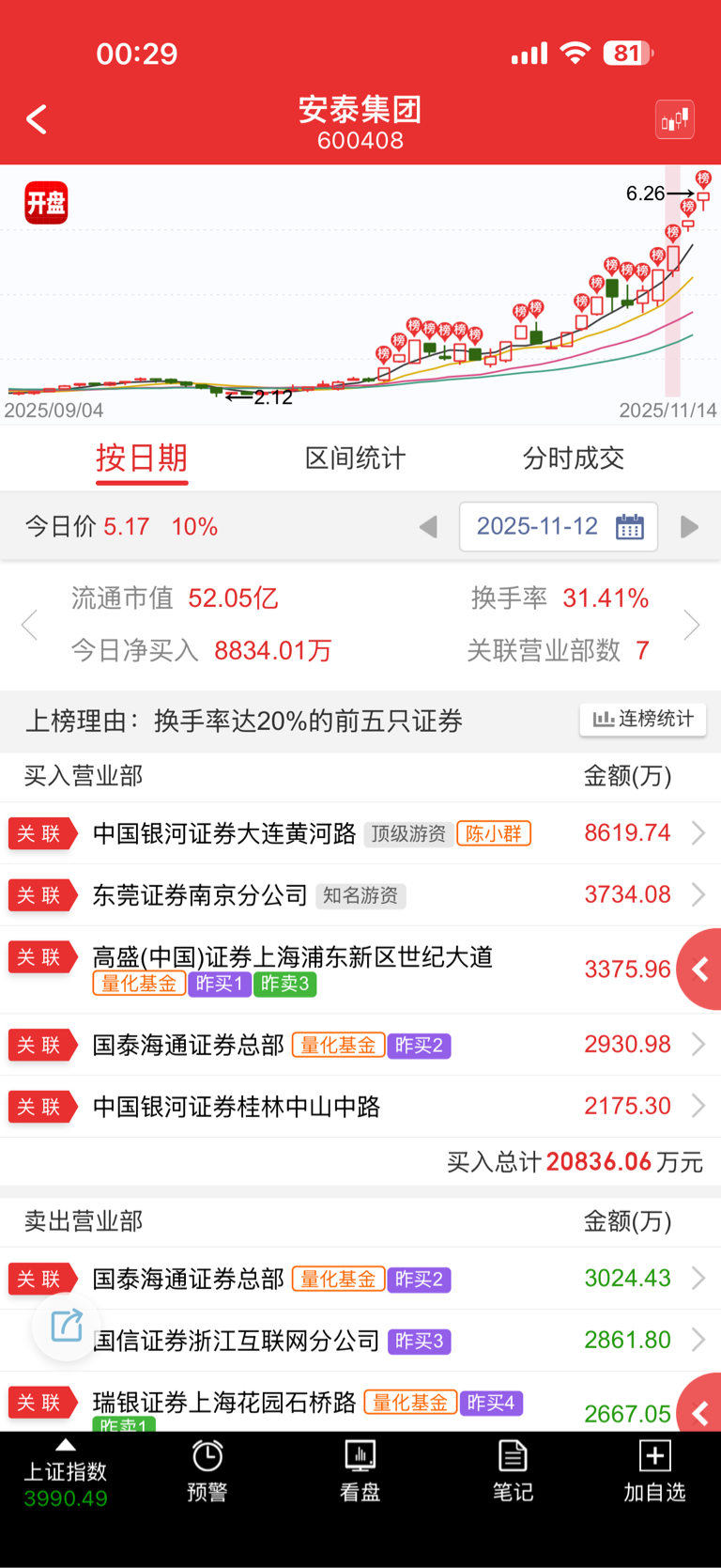 $安泰集团(SH600408)$ 历史龙虎榜看了一遍 安泰妖气十足