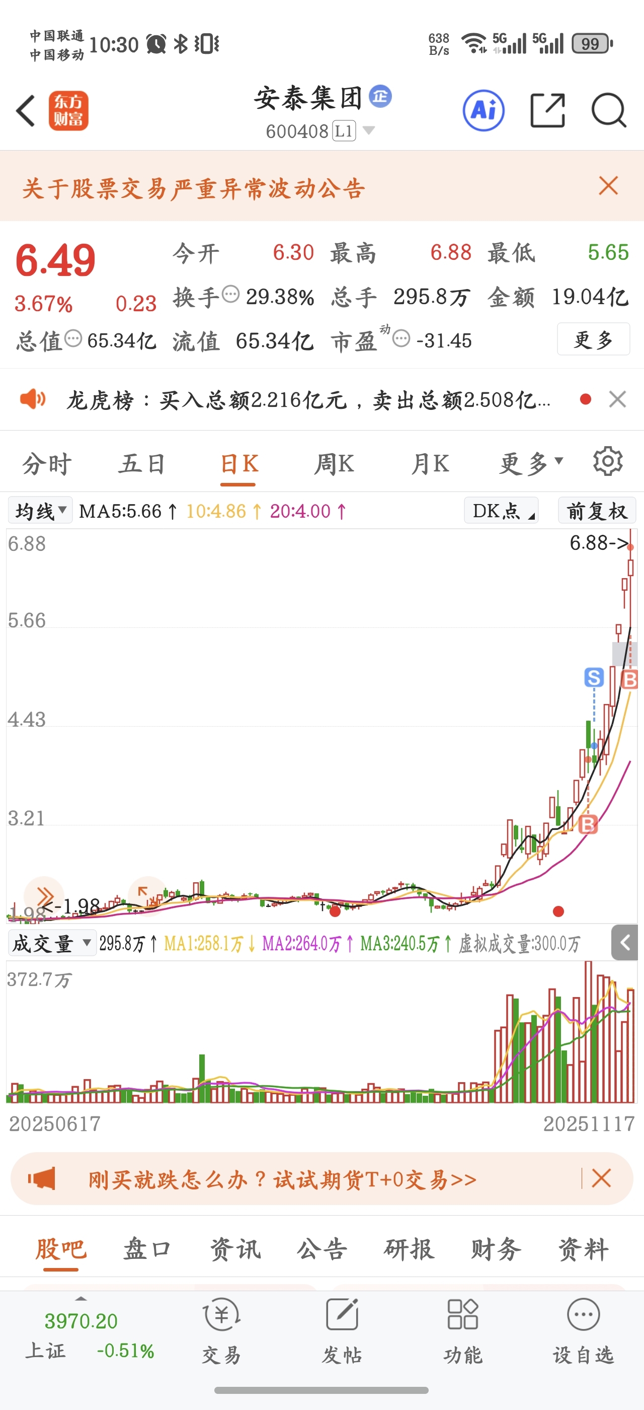 $安泰集团(SH600408)$ 有点小怕怕