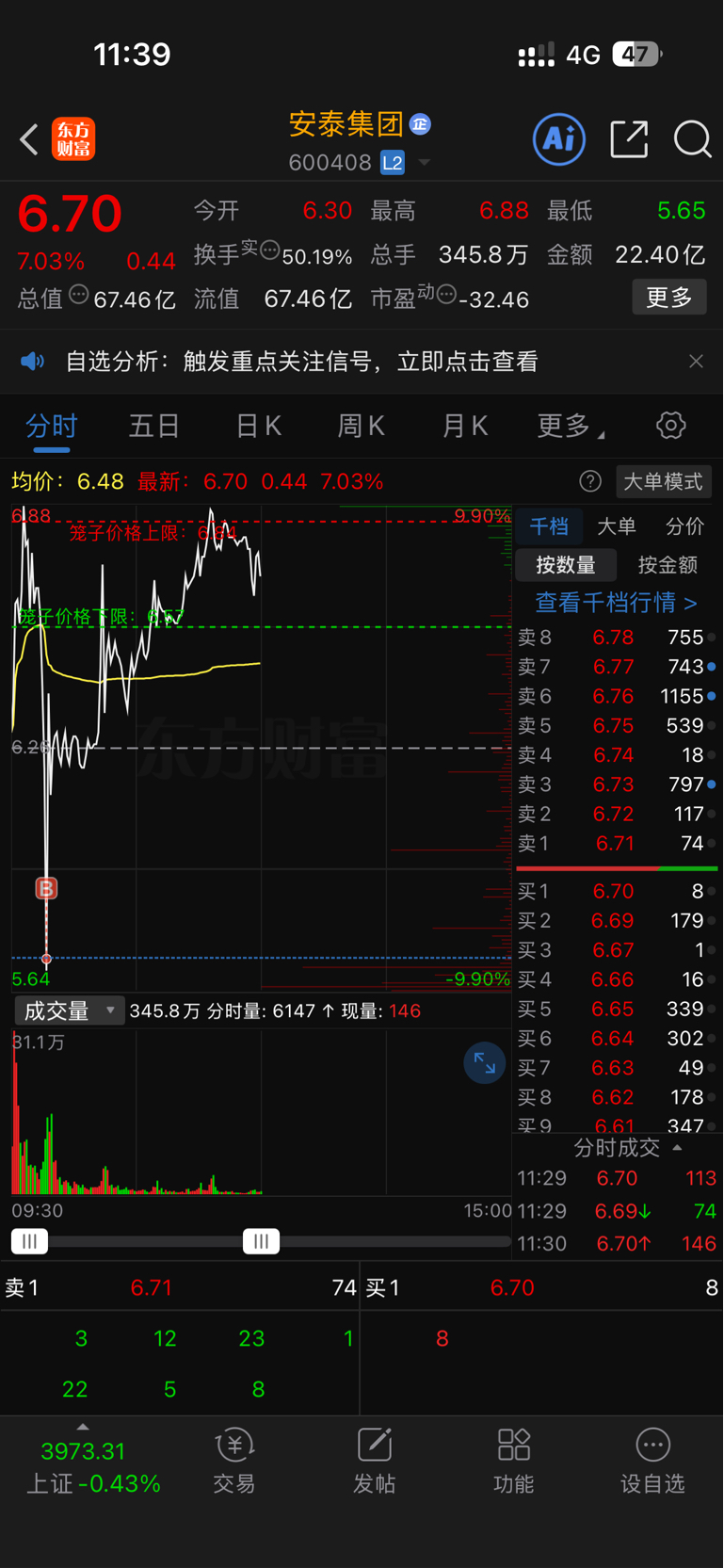 $安泰集团(SH600408)$ 明天能给我安全出来吗?