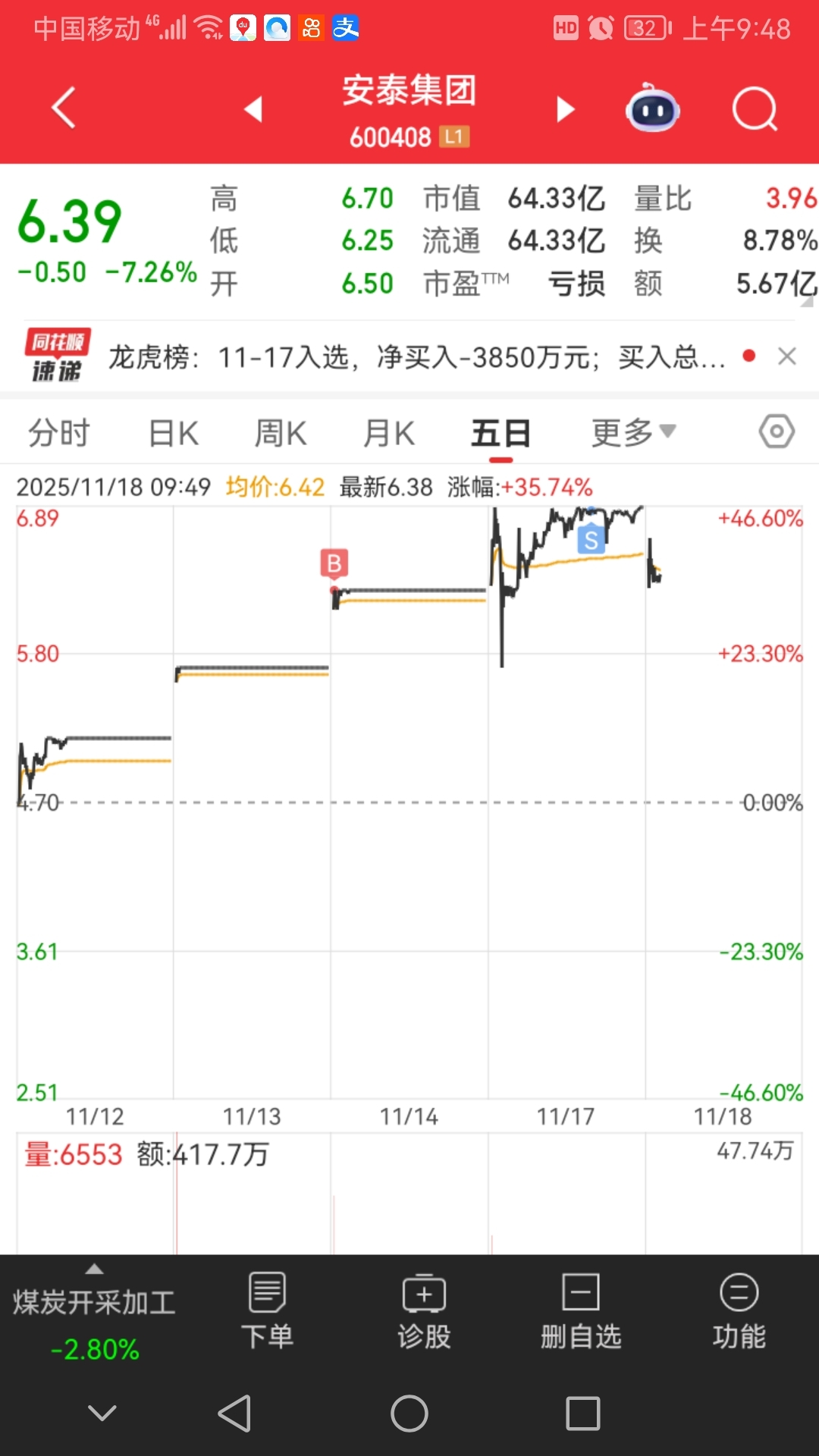 $安泰集团(SH600408)$ 我想博个地天板,就看主力给不给机会