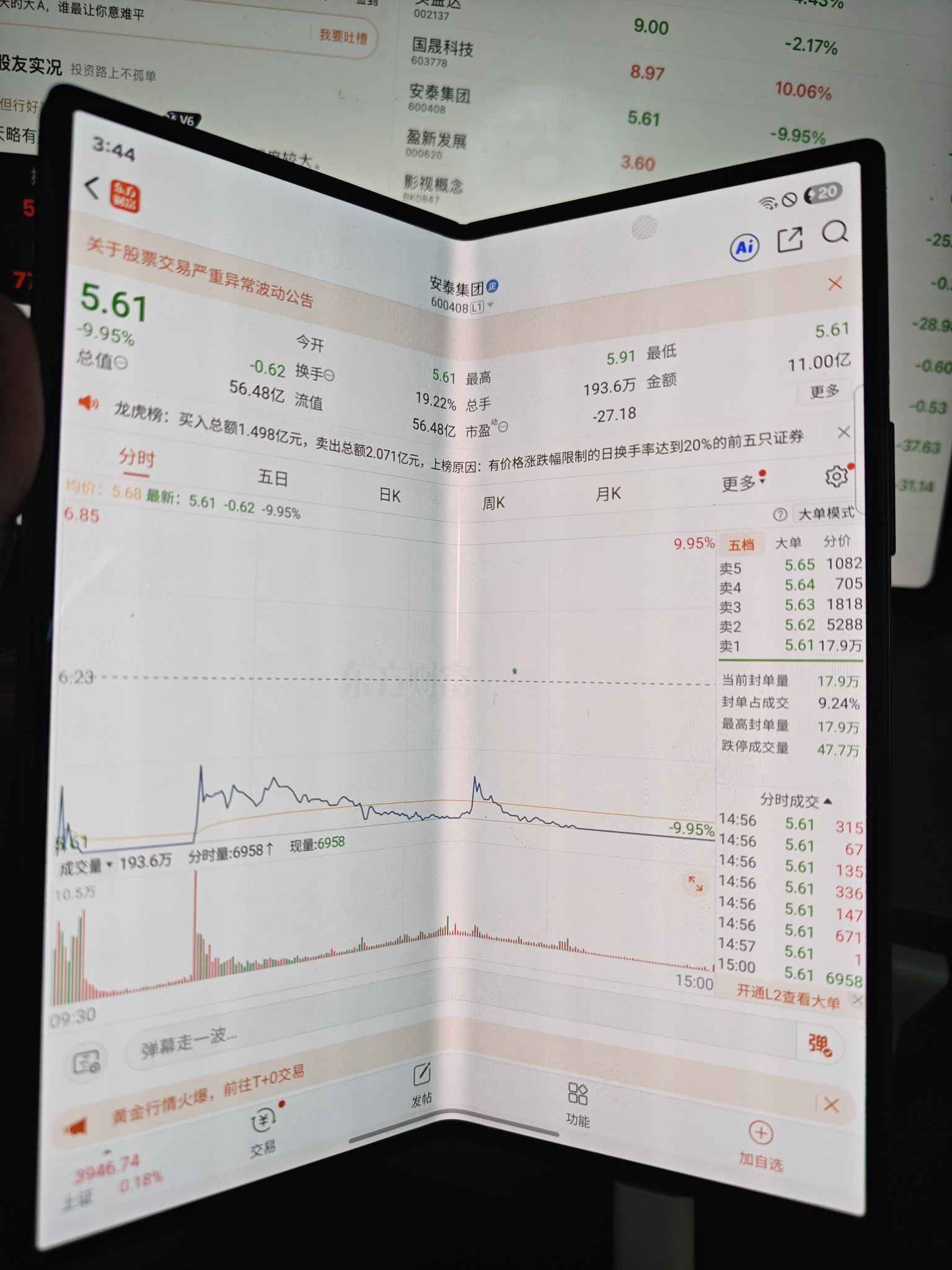 $安泰集团(SH600408)$ 今天换了新手机,买一台,亏两台