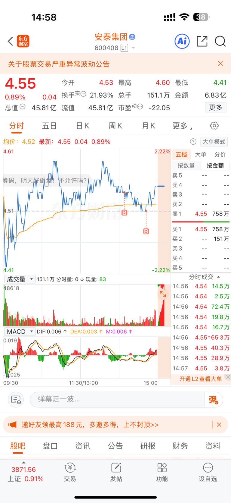 $安泰集团(SH600408)$ 有点无人问津的样子,我上车了