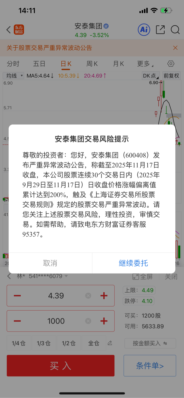 $安泰集团(SH600408)$ 买的提示这个,谁敢买?