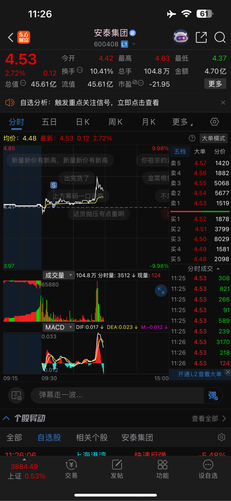 $安泰集团(SH600408)$ 套了几天一卖就涨,你是有多恶心啊