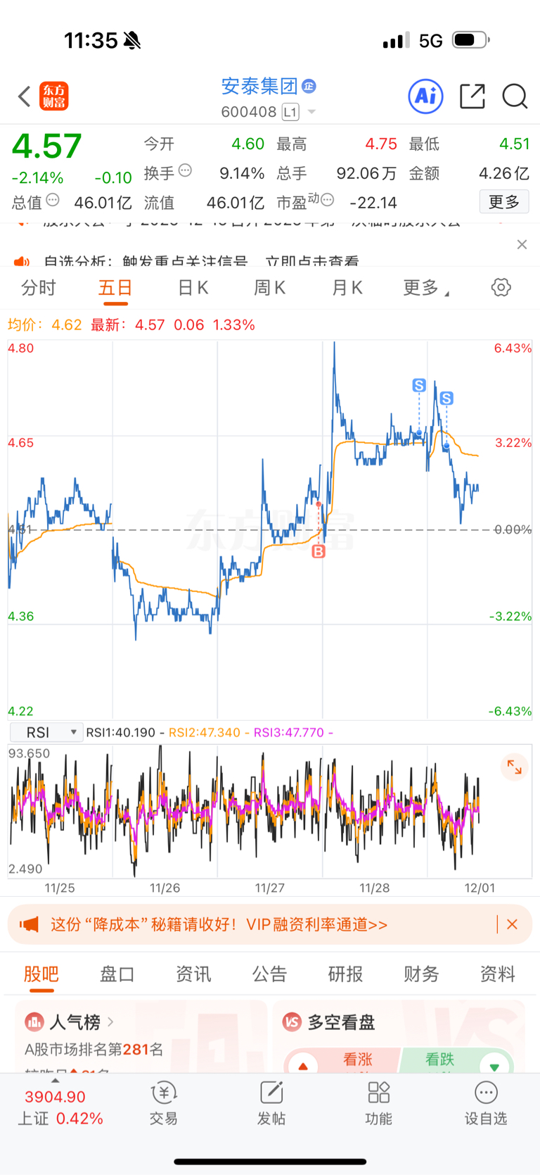 $安泰集团(SH600408)$ 本来今天红了想卖又忍住了,又来看不强果断清仓买了实达涨停了
