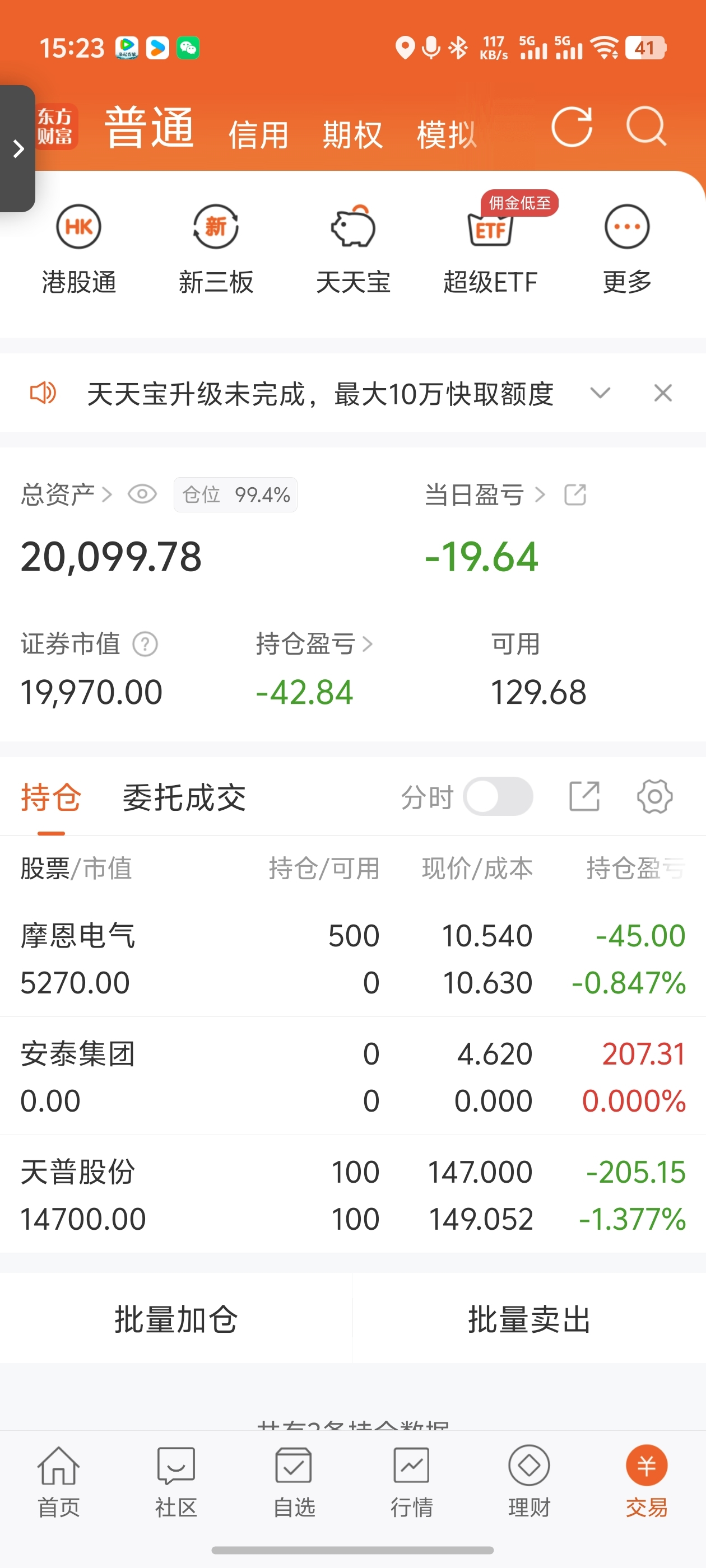 $安泰集团(SH600408)$ $摩恩电气(SZ002451)$ 悟道之后十二月一号,实盘挑战2万到一百万,今日买入摩恩电气,卖出安泰集团。今作一次性把仓位推满了导致高位被套,每次的失败都要吸取教训才能不断成长。