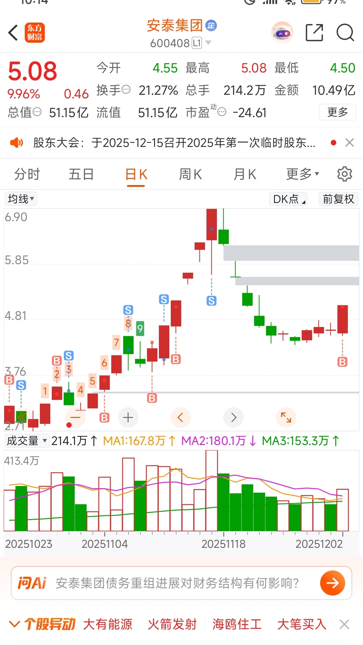 $安泰集团(SH600408)$ 老情人了,1.19亿封扳干就完事了