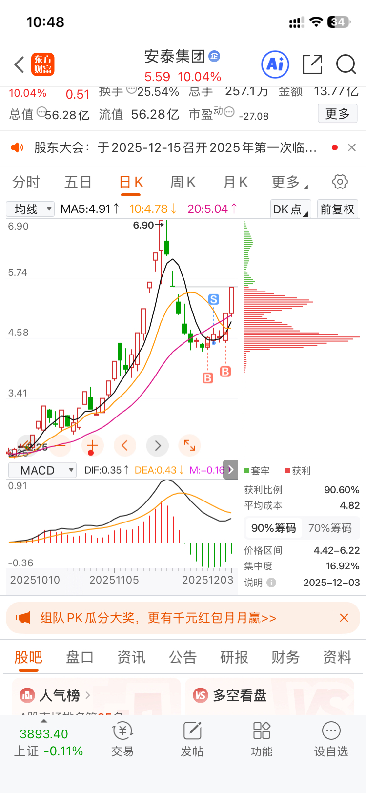 $安泰集团(SH600408)$ 想把我洗走?我做t都不做,这个月指望你带我飞了