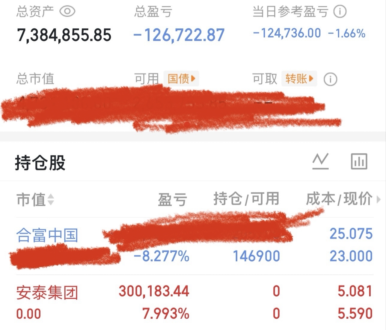 3.合富上午冲高回落,本来以为下午能因为今天出关拉起来,没想到被平潭砸盘带着冲跌停了,没想到就是这么巧,低位的地方还加了一点仓位想着会拉起来,因为幻想着尾盘会有资金拉起来所以一直没卖直到跌停,没想到最担心的事情还是发生了,合富因为位置比较高所以容易出现各种利空情况,本来以后会是停牌或者没有溢价,没想到直接出减持利空消息今天直接跌停,失策了既然考虑到可能会出现这种很坏的情况,那就不应该上车的,选其他的或者空着也好,又是一次教训,每次教训都是个跌停。