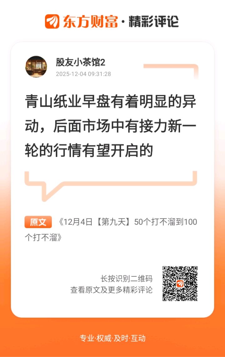 $安泰集团(SH600408)$//@股友小茶馆2 :青山纸业早盘有着明显的异动,后面市场中有接力新一轮的行情有望开启的