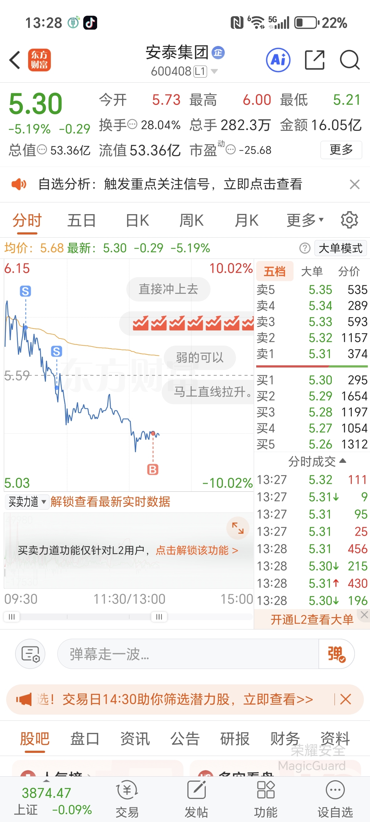 $安泰集团(SH600408)$ 来砸我