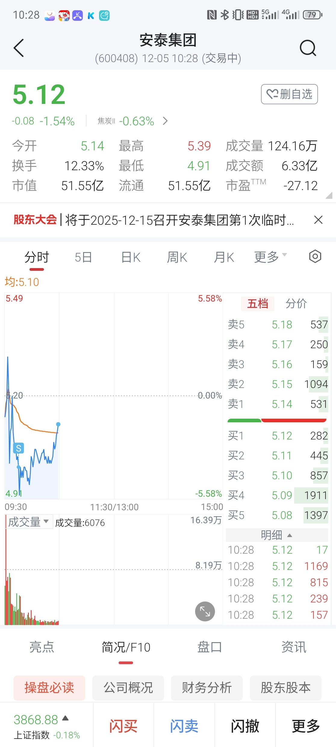 $安泰集团(SH600408)$ 韭菜在这 本来赚一万4, 搞了4天 就赚手续费