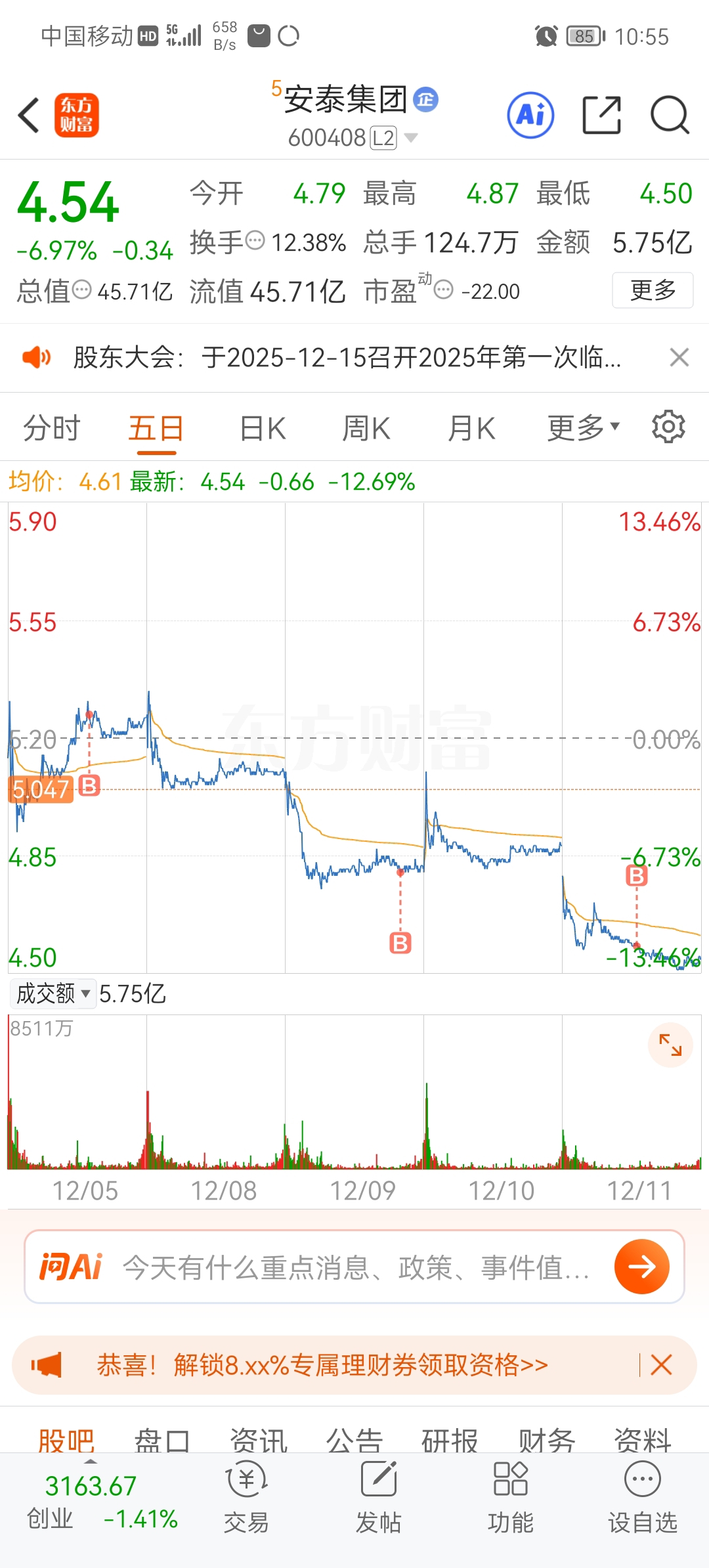 $安泰集团(SH600408)$ 补三次仓,还能拿吗#收盘点评#