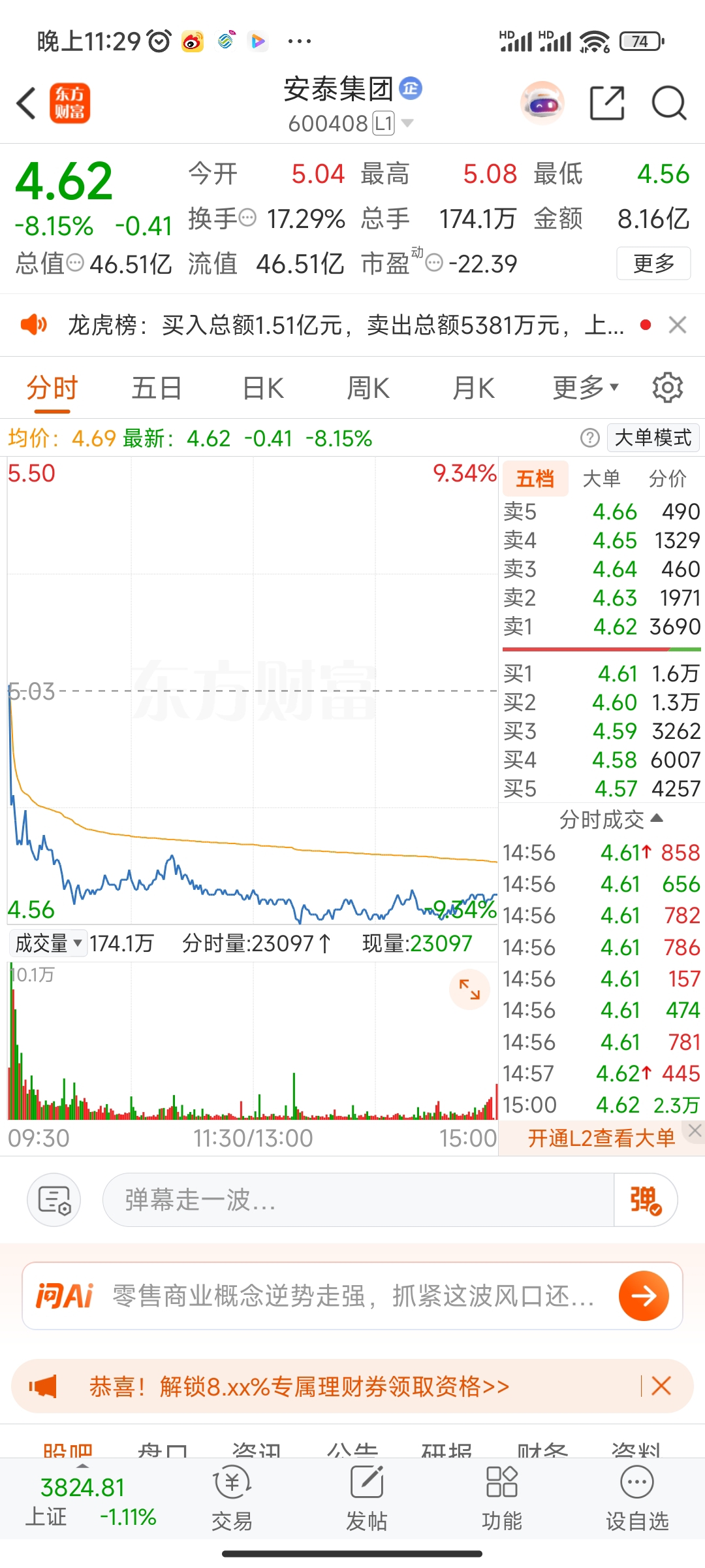 $安泰集团(SH600408)$ 安泰集团,10倍之旅的第44“日”!