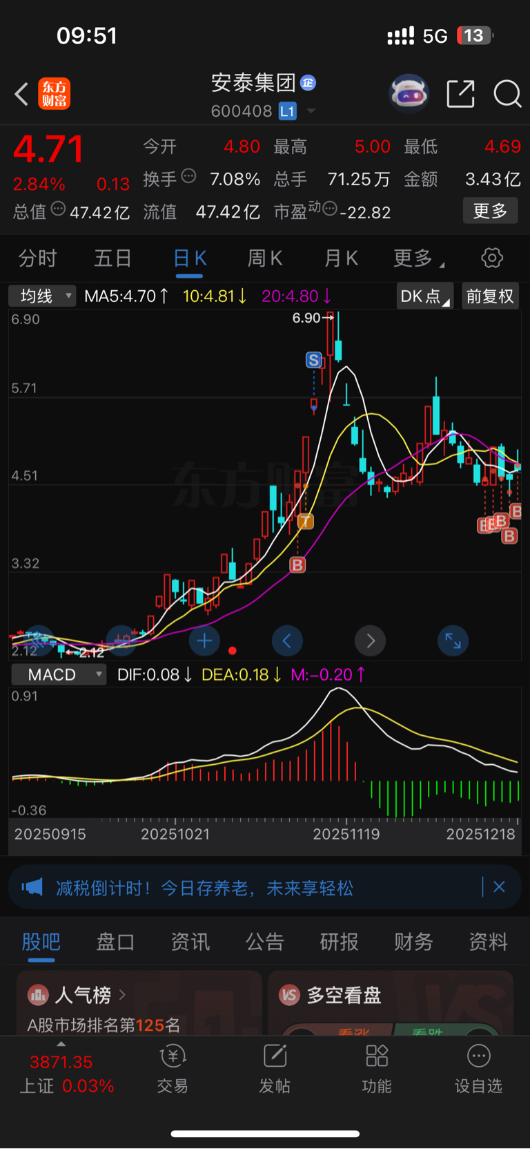 $安泰集团(SH600408)$ 第一次浮盈加仓了 唉 手贱