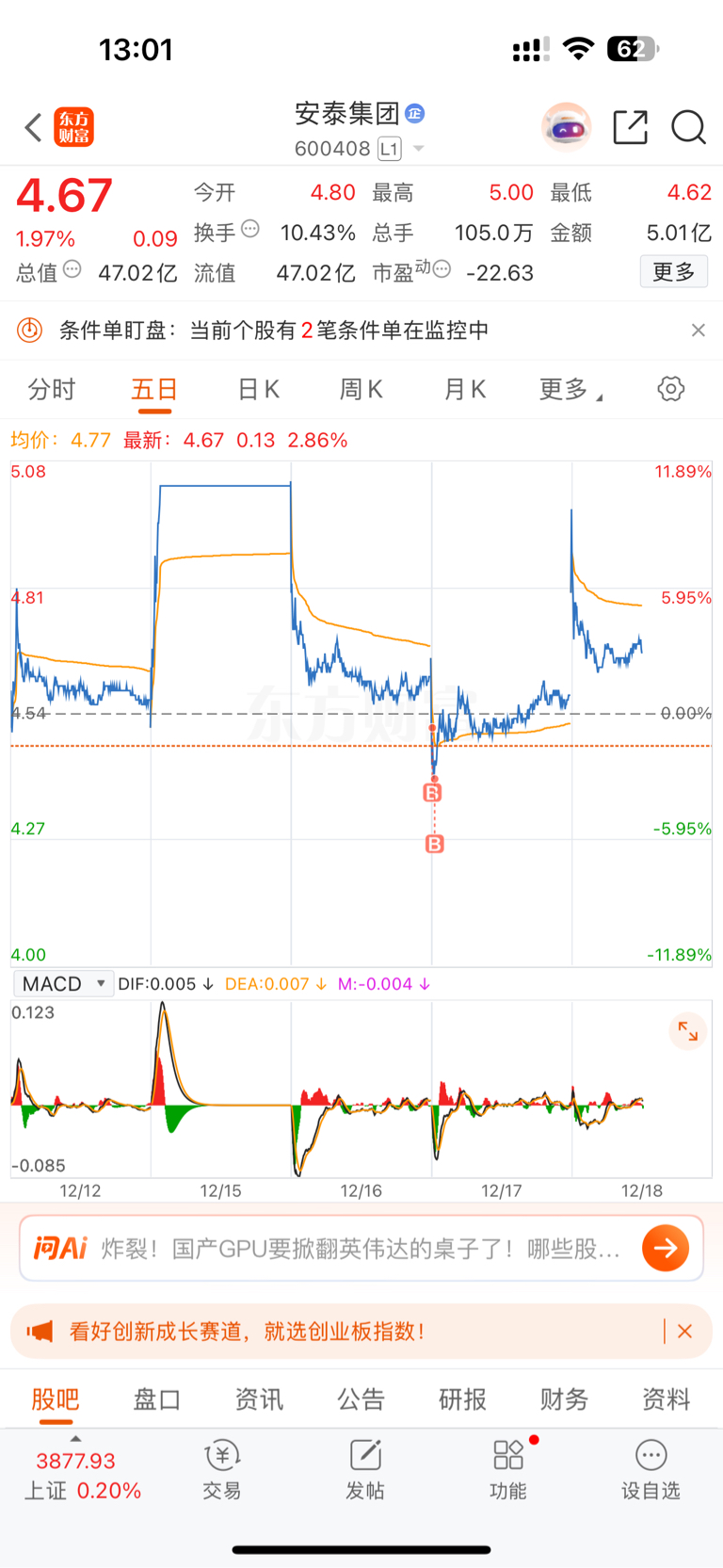 $安泰集团(SH600408)$ 早上没来得及卖,我丢