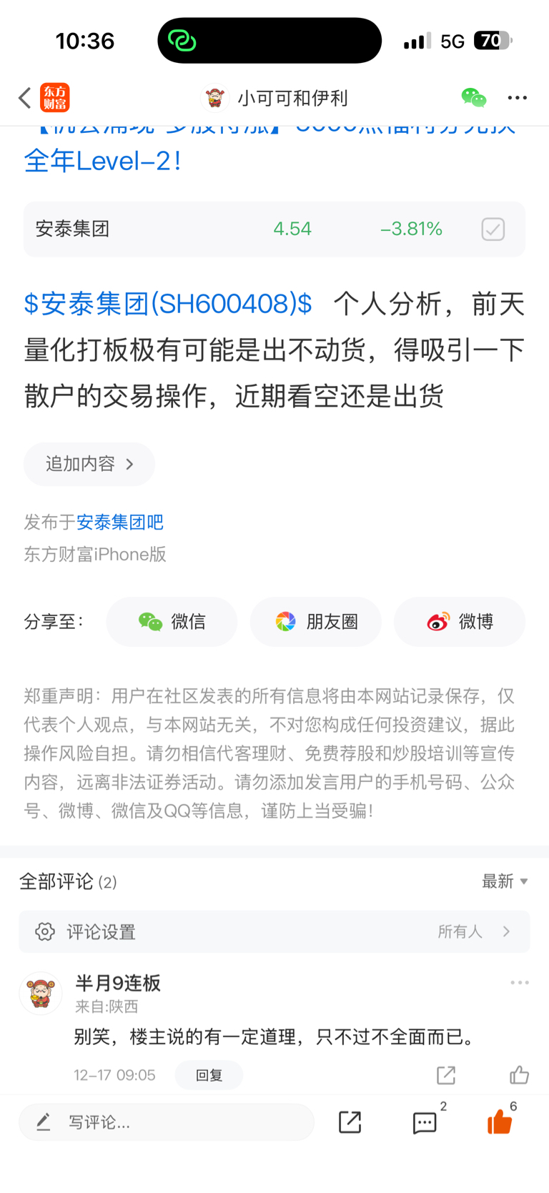 温馨提示: 1.根据《证券法》规定,禁止编造、传播虚假信息或者误导性信息,扰乱证券市场;2.用户在本社区发表的所有资料、言论等仅代表个人观点,与本网站立场无关,不对您构成任何投资建议。用户应基于自己的独立判断,自行决定证券投资并承担相应风险。《东方财富社区管理规定》