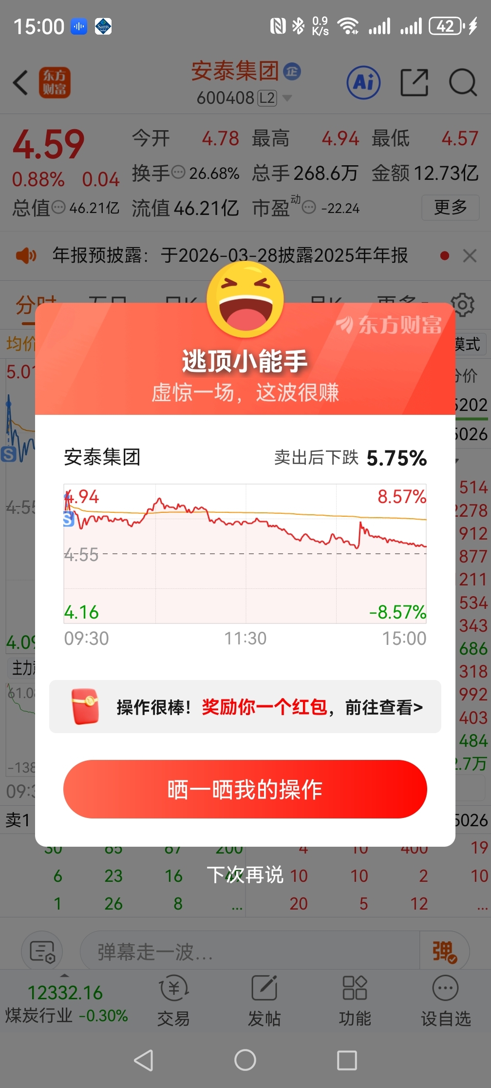 $安泰集团(SH600408)$ 感谢安泰,来几次赚了几次