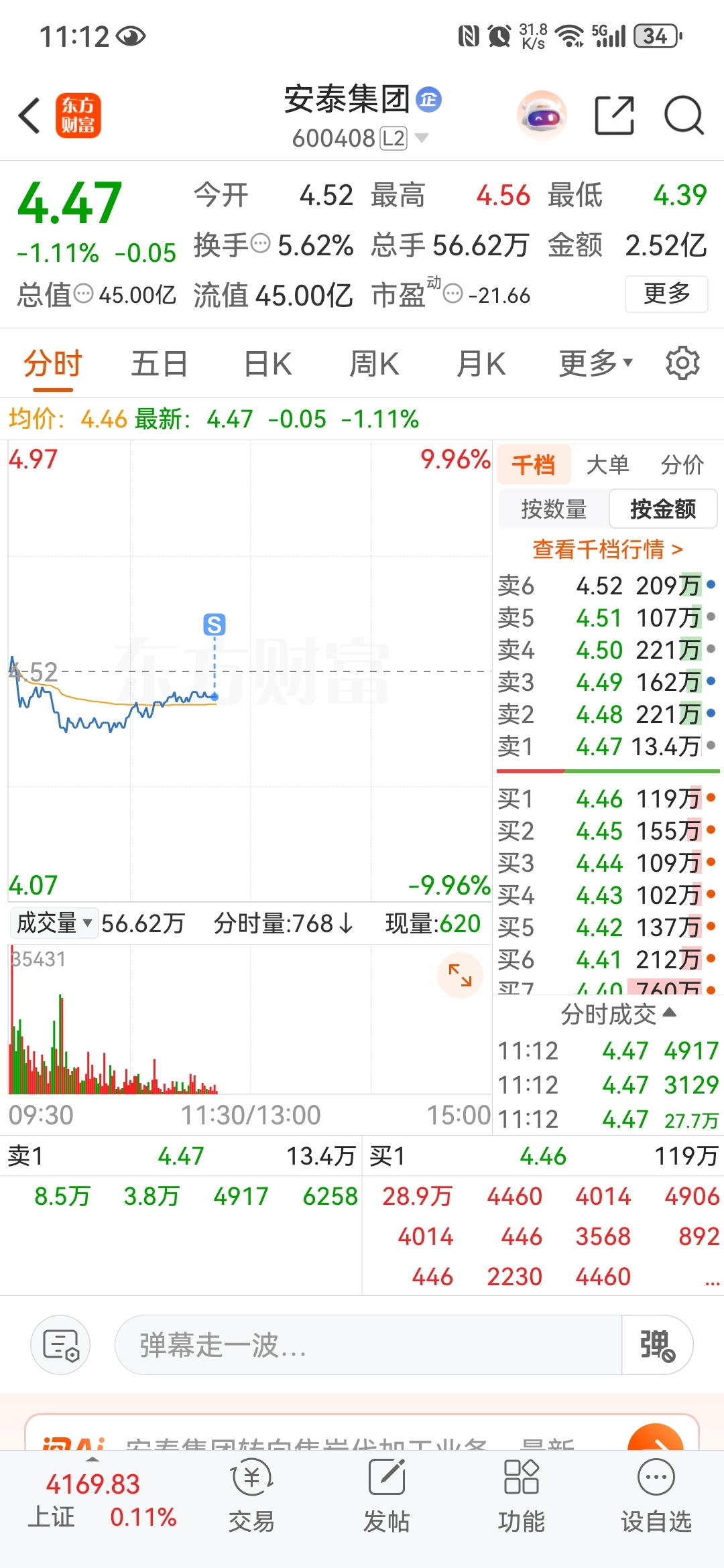 $安泰集团(SH600408)$ 4.94没走,现在割肉,啥操作