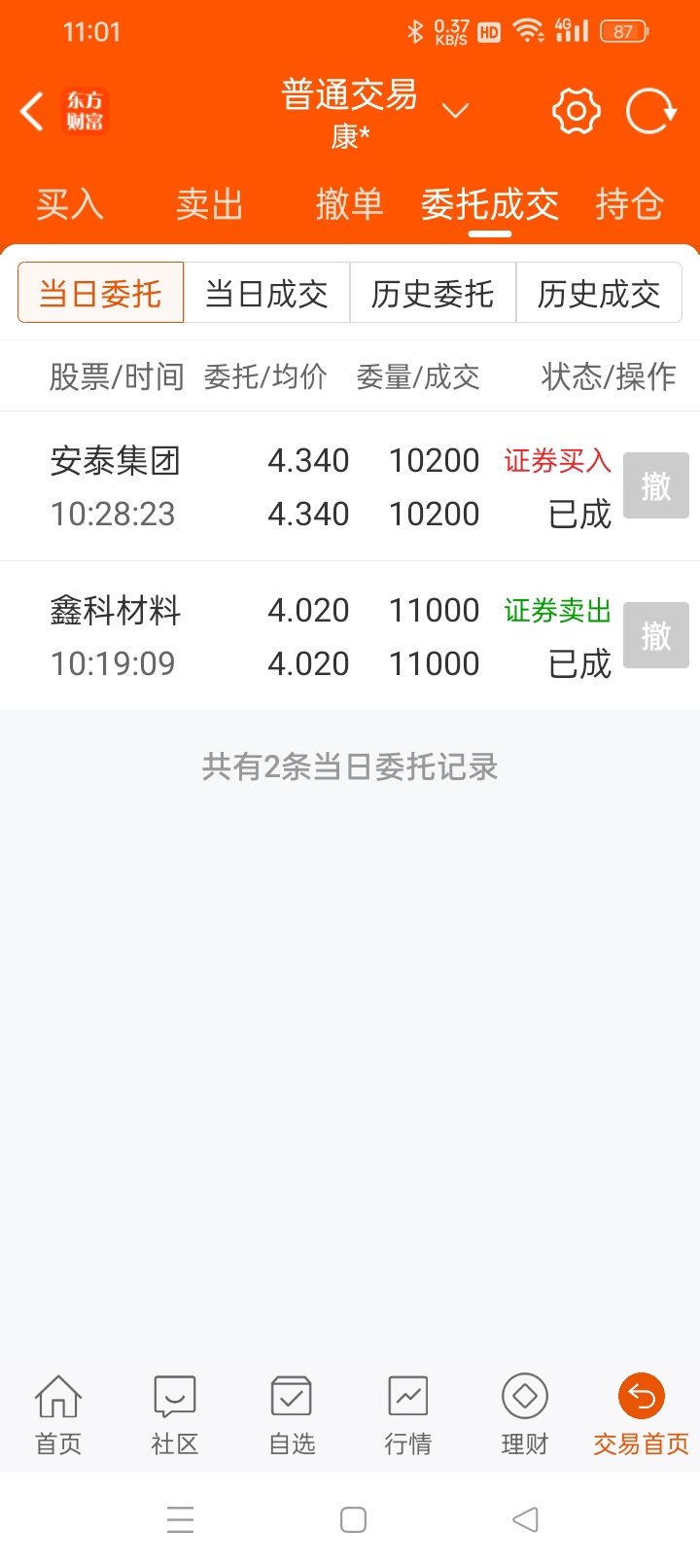 今天卖了鑫科材料,满仓安泰,成本由4.78元降到4.55元