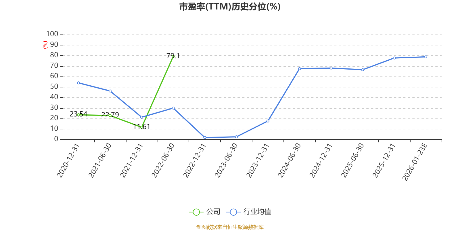 以本次披露业绩预告均值计算,公司近年市盈率(TTM)图如下所示: