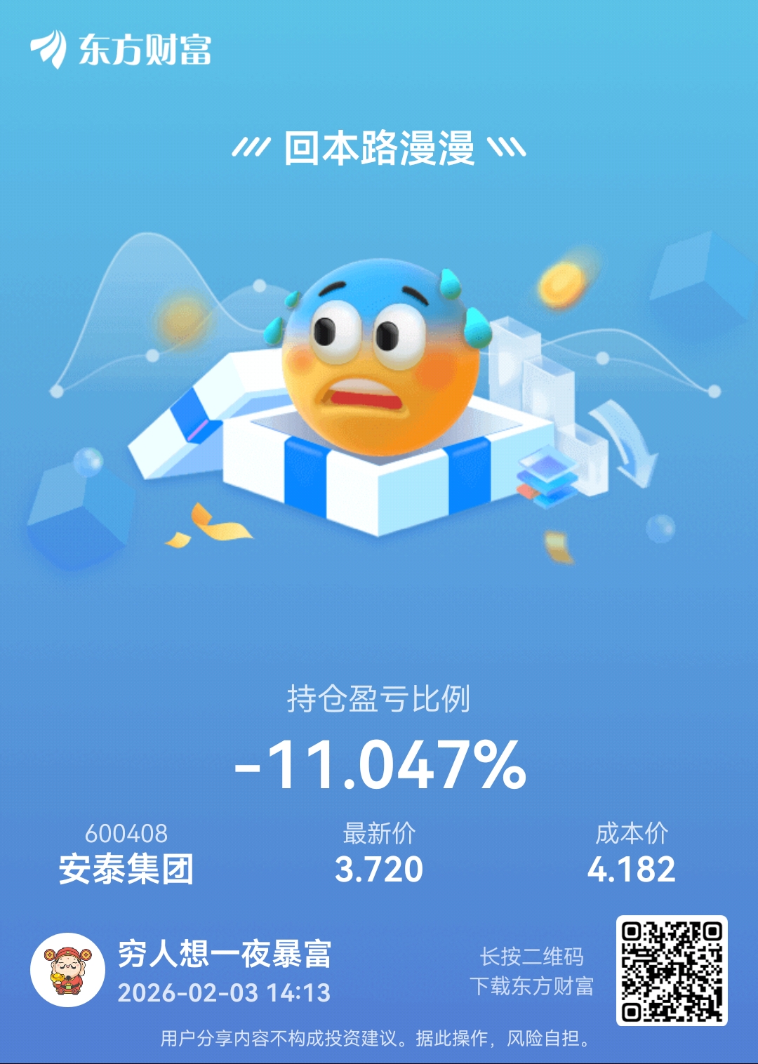 温馨提示: 1.根据《证券法》规定,禁止编造、传播虚假信息或者误导性信息,扰乱证券市场;2.用户在本社区发表的所有资料、言论等仅代表个人观点,与本网站立场无关,不对您构成任何投资建议。用户应基于自己的独立判断,自行决定证券投资并承担相应风险。《东方财富社区管理规定》