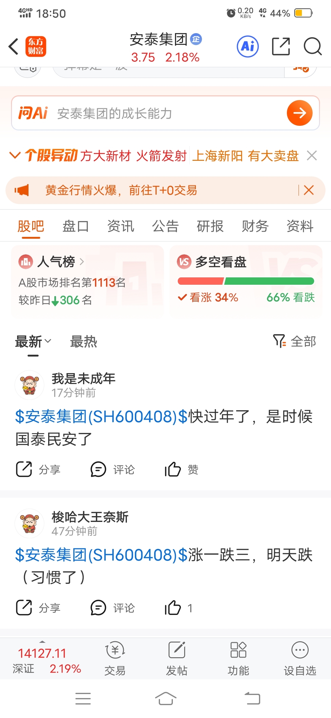 $安泰集团(SH600408)$ 这么多人看跌,老庄你不要拉10个板给看跌的人看看吗
