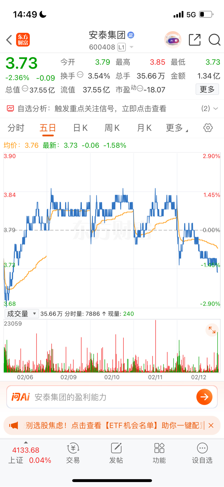 $安泰集团(SH600408)$ 我就没见过这一号勒