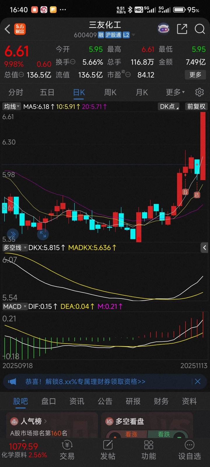 $三友化工(SH600409)$ 买少你了,明天有可能跌2个点