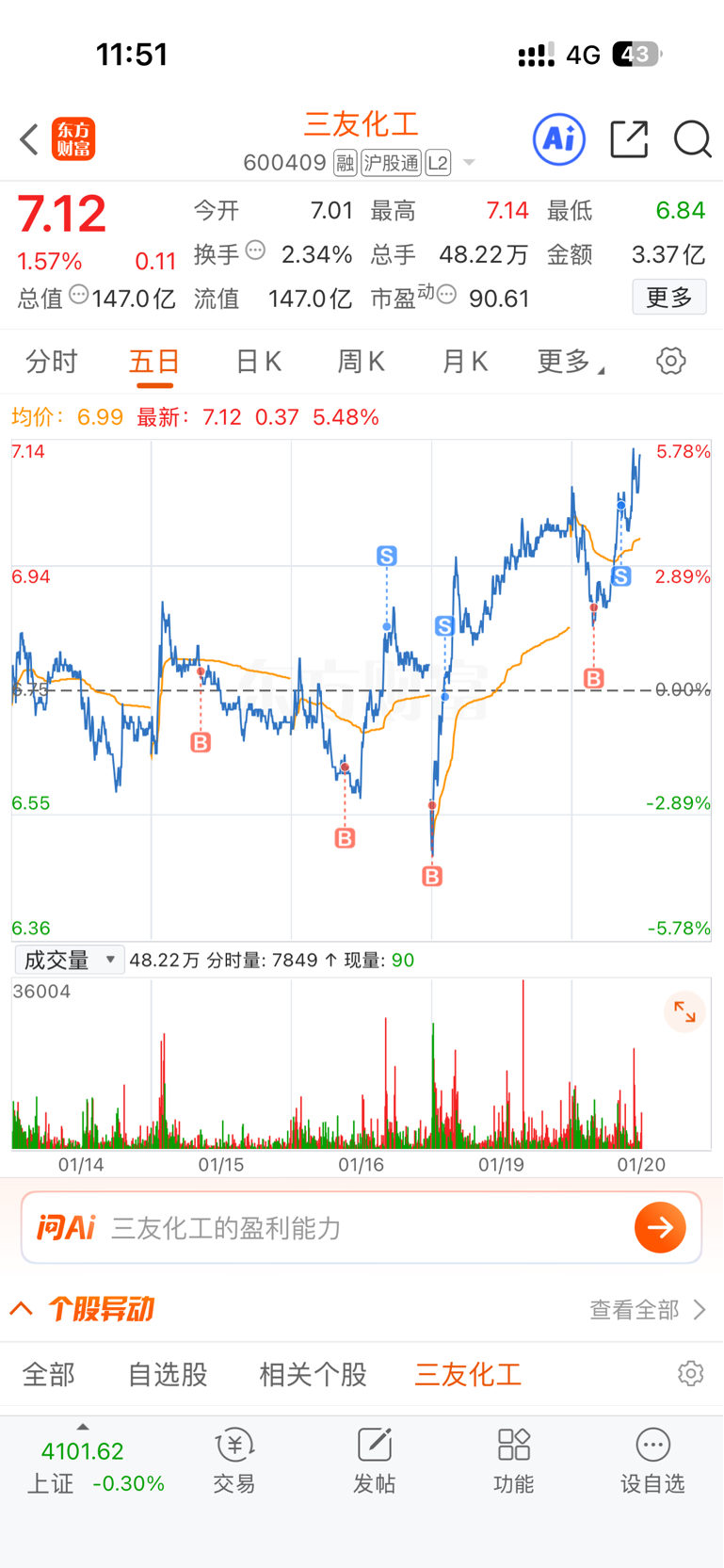 T了3次获利13%买卖点都不是很完美